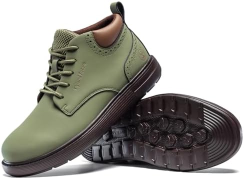 FLYLAND Men's Chukka Boots Casual Leather Shoes Ankle Shoes Non Slip Breathable Comfortable Mid Top for Driving Walking Outdoor