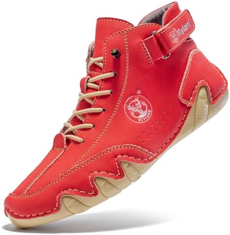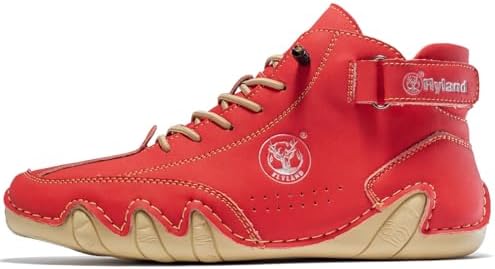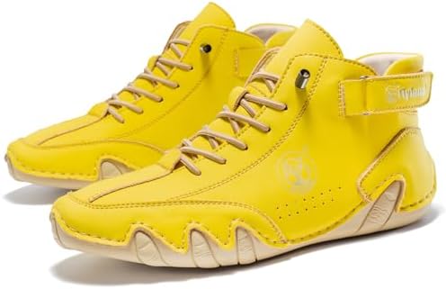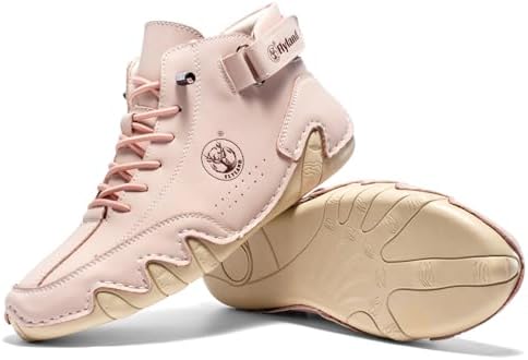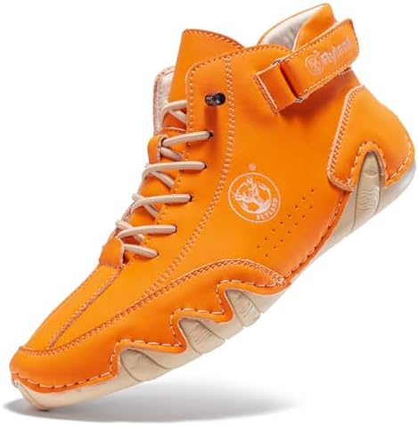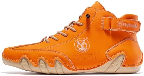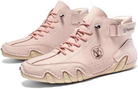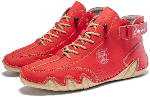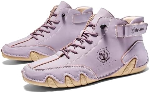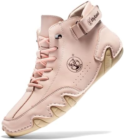 • FLYLAND Women's Casual Leather Fashion Sneakers Handmade Ankle Chukka Boots Lightweight Slip-On Loafers Walking Driving Shoes
